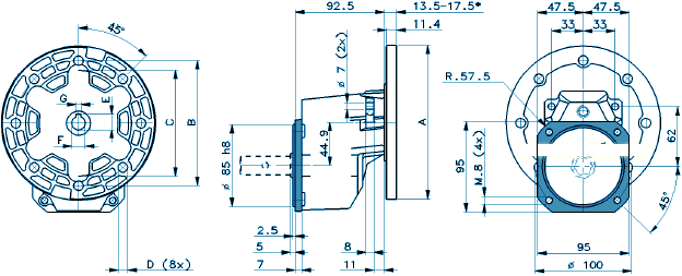 Присоединительные участки выходных валов отвечают требованиям DIN 6884.