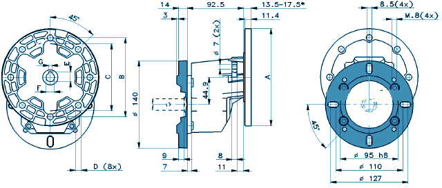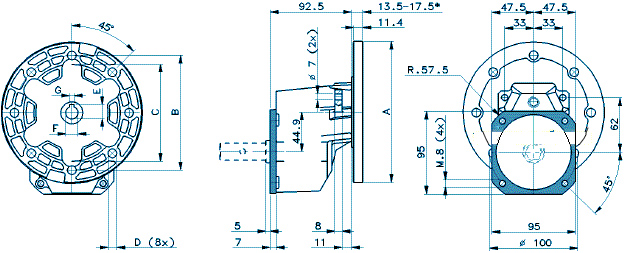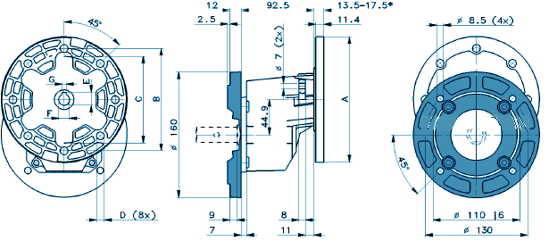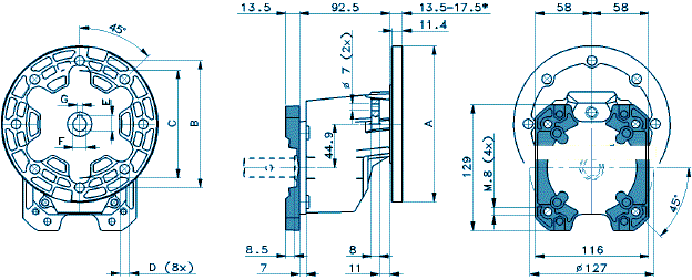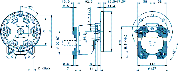 Варианты исполнения выходных фланцев: круглые, квадратные ровные и квадратные с пазами.
